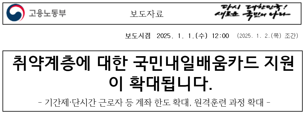 내일 배움 카드는 단순한 국비지원 카드 아닙니다. 든든한 지원군입니다. 본인의 경력을 새롭게 쌓을 수 있고 취업 기회를 얻을 수 있는 좋은 제도입니다. 새로운 기회를 얻고 싶으시다면 내일 배움 카드를 통해 소중한 첫걸음을 하시는것을 추천드리고 항상 정확한 신청 방법과 지원 조건을 파악하고 본인에게 맞는 과정을 선택하여 최대한의 혜택을 누려보시길 바랍니다. 내일배움카드를 신청하고, 미래를 위한 첫걸음을 내딛으시길 바랍니다.